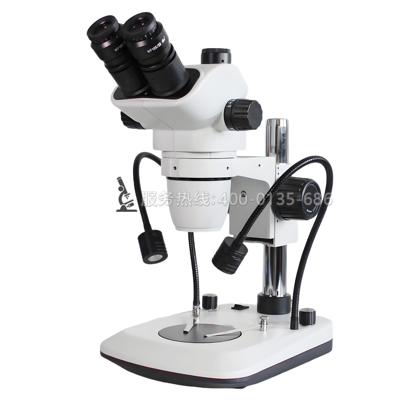 SRG-6555A三目雙側(cè)光源體視顯微鏡手機(jī)維修生物解剖 6.5-55X連續(xù)變倍,雙側(cè)LED光源角度可任意調(diào)節(jié),LED底光源