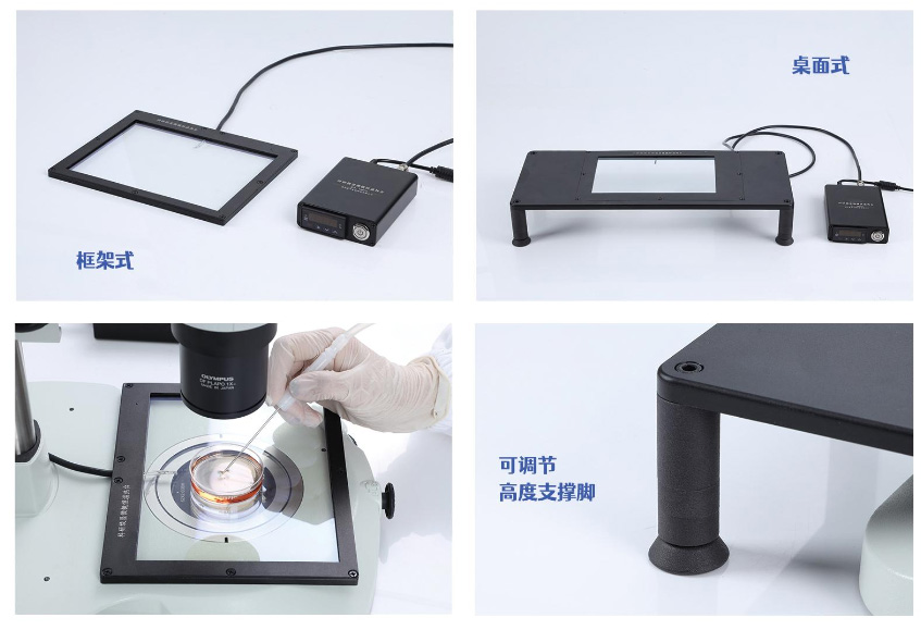 產(chǎn)品介紹一、 產(chǎn)品概述: AH系列顯微鏡透明恒溫熱臺是我司開發(fā)的通用型體式顯微鏡、倒置顯微鏡專用熱臺,適用于國產(chǎn)、進(jìn)口各型體視顯微鏡。本產(chǎn)品采用光學(xué)級透明發(fā)熱玻璃,發(fā)熱均勻,耐磨且具有高透光性,完全不影響觀察,保證培養(yǎng)皿內(nèi)溫度維持在37℃,有利于細(xì)胞及胚胎發(fā)育。 二、產(chǎn)品特點(diǎn): ●清晰的數(shù)字顯示和直觀的按鍵可以輕松地輸入溫度參數(shù)。 ●采用進(jìn)口高精度溫度傳感器,可以提供穩(wěn)定、精確可靠的溫度控制。 ●產(chǎn)品核心為光學(xué)級透明發(fā)熱玻璃,耐磨性高,長期使用無劃痕,透光率>95%,不影響觀察細(xì)胞。 ●本產(chǎn)品有兩種產(chǎn)品結(jié)構(gòu)??蚣苁郊軜?gòu),直接放置于體視顯微鏡載物平臺上;桌面式結(jié)構(gòu),帶有四個可調(diào)節(jié)高度支撐腳,適配所有型號體式顯微鏡。 ●在加熱平臺實(shí)際使用過程中,放置在熱臺上的培養(yǎng)皿內(nèi)實(shí)際溫度會根據(jù)室溫、培養(yǎng)液體積、培養(yǎng)皿皿底與熱臺接觸面積等發(fā)生變化,即熱臺設(shè)定為37°C時,培養(yǎng)皿內(nèi)實(shí)際溫度是低于37°C。本產(chǎn)品配備針尖式測溫儀,可測量熱臺上培養(yǎng)皿的培養(yǎng)滴內(nèi)實(shí)際溫度,從而保證培養(yǎng)皿內(nèi)溫度維持在設(shè)定值,避免盲目設(shè)定熱臺溫度,有利于細(xì)胞及胚胎發(fā)育。