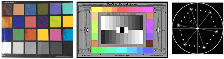 色彩準確度 什么叫色彩準確度?簡單說,就是拍出來的色彩正不正,紅色是不是紅色,藍色是不是藍色,白色是不是白色。那么怎么評價色彩正不正呢? 對色彩的量化 首先,為追求比較客觀的評價,其使用“計量器件”作為測量參考,顯微鏡 相機(顯微鏡攝像頭)拍攝的畫面由紅綠藍信息組成。那么對色彩的測量,其實就是測量畫面中所含的紅綠藍信息。測試畫面色彩信息的“計量器件”叫矢量示波器(Vectorscope), 下圖這臺機器。